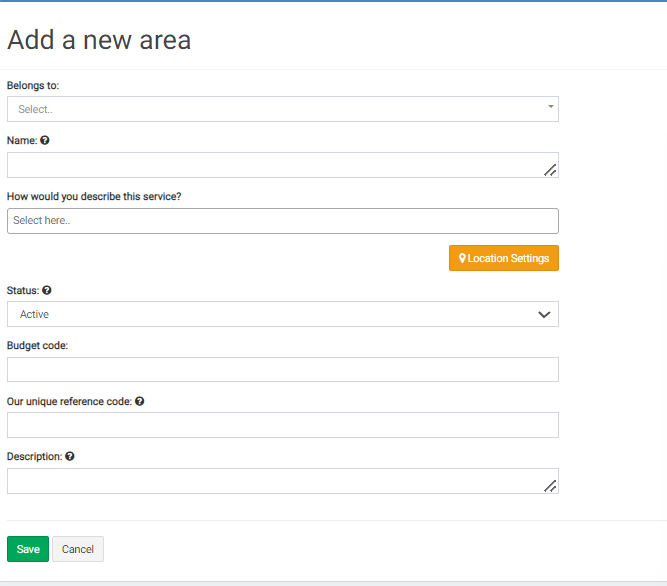 - First, select which area this new area will sit under, or which area it “belongs to” from the drop down list.