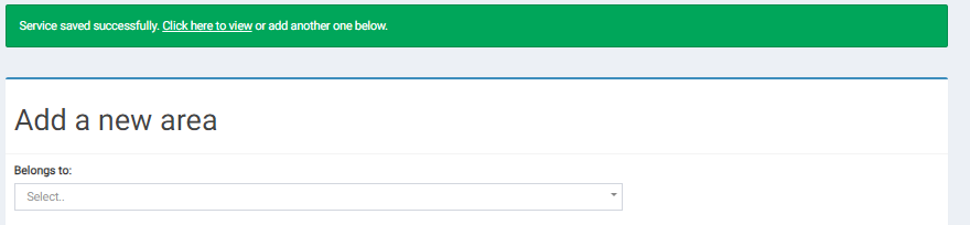 A prompt will appear at the top of the page to confirm that the service was added successfully and give the option to view or add another service.