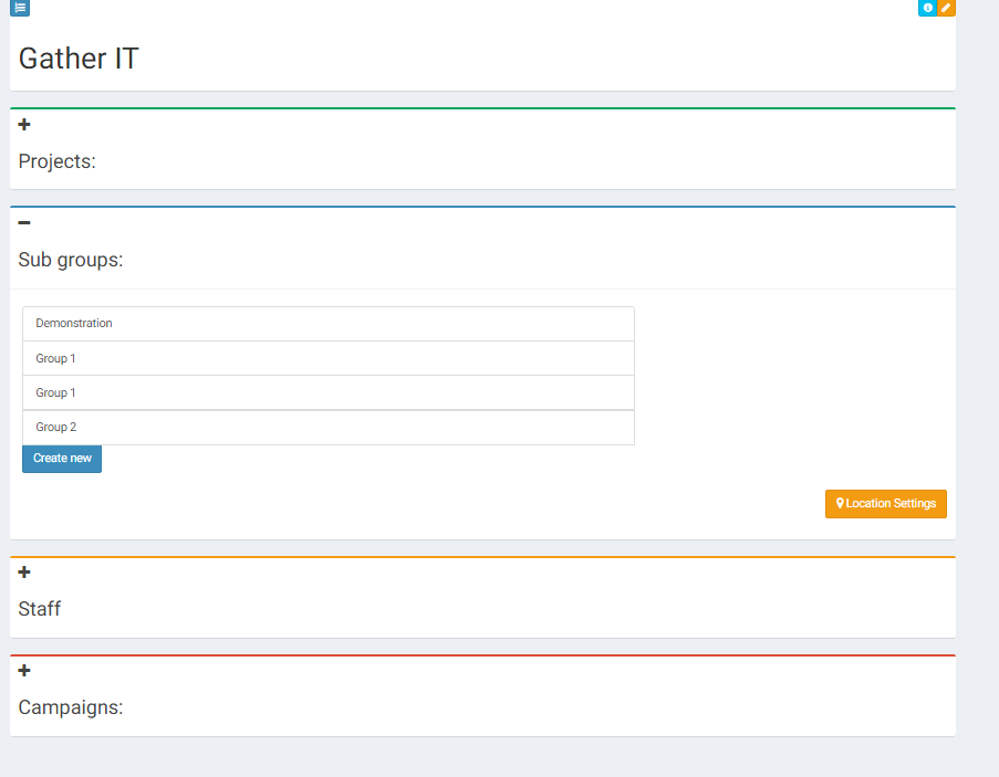 A new area, or sub group, can be added by clicking on the “new” icon on the Organisational Structure page.